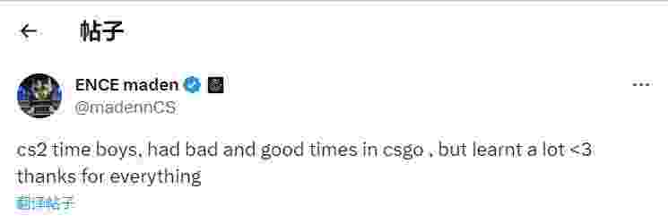 Pavle Bošković | Maden:现在是CS2时间了。在CSGO有高光也有低谷,从中受益匪浅。谢谢你所做的一切。