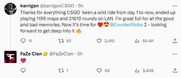 随着CS2的正式发布,陪伴我们许久的CSGO也迎来了生命的终点。众多职业哥在社交平台上告别CSGO。