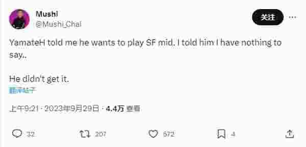 Mushi:“YamateH和我说他想走中玩影魔,我跟他说我无话可说……他没听懂我的梗。”