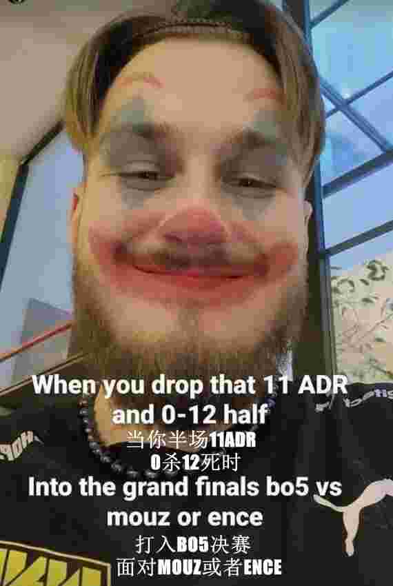 在昨天对阵Monte的比赛中,jL在Mirage一图时作为进攻方一人不杀(0-12),而赛后jL分享了一张个人小丑自拍。