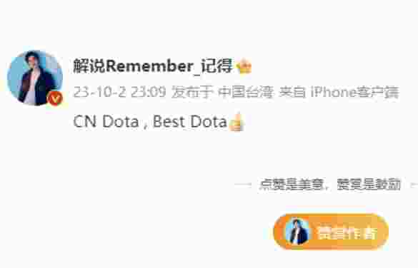 10月2日讯 杭州亚运会《DOTA2》项目决赛,中国队鏖战三局击败蒙古队夺得金牌。赛后前LPL解说记得祝贺DOTA2中国队夺金:CN Dota , Best Dota.