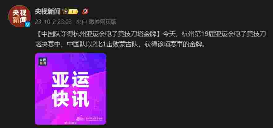 10月2日讯 杭州亚运会DOTA2决赛中国队鏖战三局战胜蒙古队夺得金牌,央视新闻也对该喜讯进行播报!这次夺冠含金量十足,不仅是在LOL对抗韩国失利的情况下,拿下了MOBA项目另一块金牌保住颜面,更是为DOTA2在中国的发展做出了重要贡献。得到社会关注和认可能让更多年轻人来玩DOTA2,热爱DOTA2,为DOTA2注入新鲜血液!