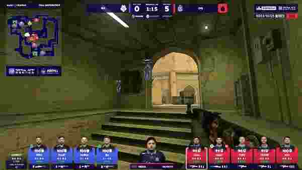 图一来到了荒漠迷城,OG率先进攻,赢下手枪局的OG一鼓作气连取五分,手感十分火热,G2及时调整,扳回几分,但是OG的进攻依然犀利,nexa的指挥和枪法都很在线,几次快攻把G2防守冲的摇摇欲坠,上半场最终局土匪借着经济优势再拿一分,把比分定格在10-5,OG领先。