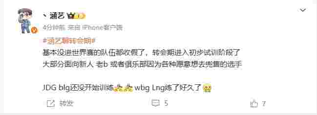 “基本没进世界赛的队伍都收假了,转会期进入初步试训阶段了