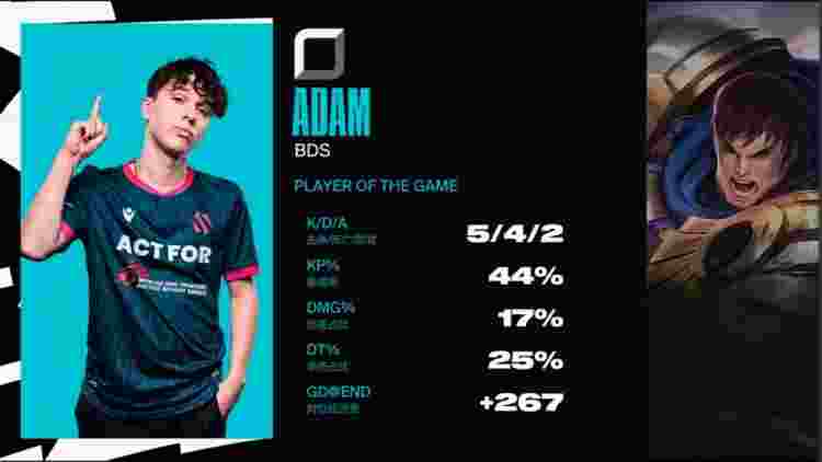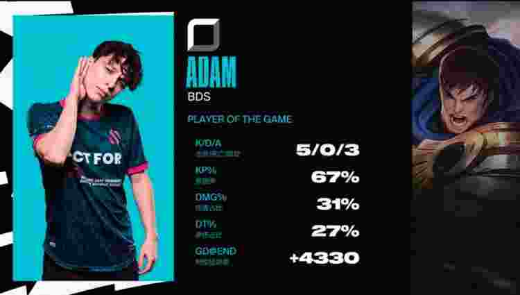 蓝色方BDS:Adam盖伦、Sheo猪妹、nuc发条、Crownie伊泽瑞尔、Labrov洛