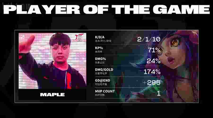 蓝色方PSG:Azhi凯南、JunJia皇子、Maple妮蔻、Wako霞、Woody洛