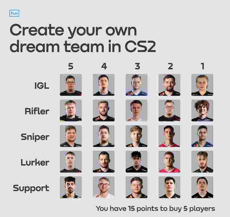 日前社区有CSer制作了一张趣图,玩家有15分来打造自己的CS新版本梦之队。5分都是该位置的顶级选手,有意思的是表中将