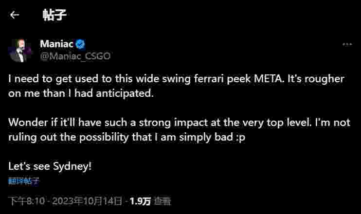Mathieu Quiquerez | Maniac分享了自己对CS新版本大拉Peek的看法。
