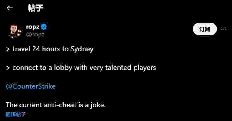 Robin Kool | ropz对于CS新版本的VAC实在是无语了。日前ropz在推特上发文,吐槽CS新版本恶劣的游戏环境。