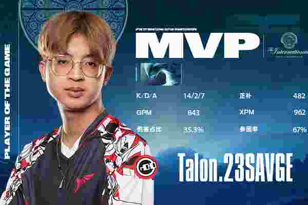 23Savge成功证明了自己,在Talon对阵GG的第三局比赛中,操刀水人终结比赛,多次变身成为白牛,在团战中七进七出秒杀迪拉臭的虚空假面,和Ace外强中干的本体白牛形成了鲜明对比。半场开的香槟最终变成庆功的酒,水人王实至名归!从他利雅得大师赛半场开香槟被Liquid偷家翻盘到TI12水人击败GG晋级胜者组,这波逆袭震惊了所有观众。在这个一号位至关重要的版本,23Savge会有一个巨大的舞台展现自己,TI12的Talon将成为大魔王!