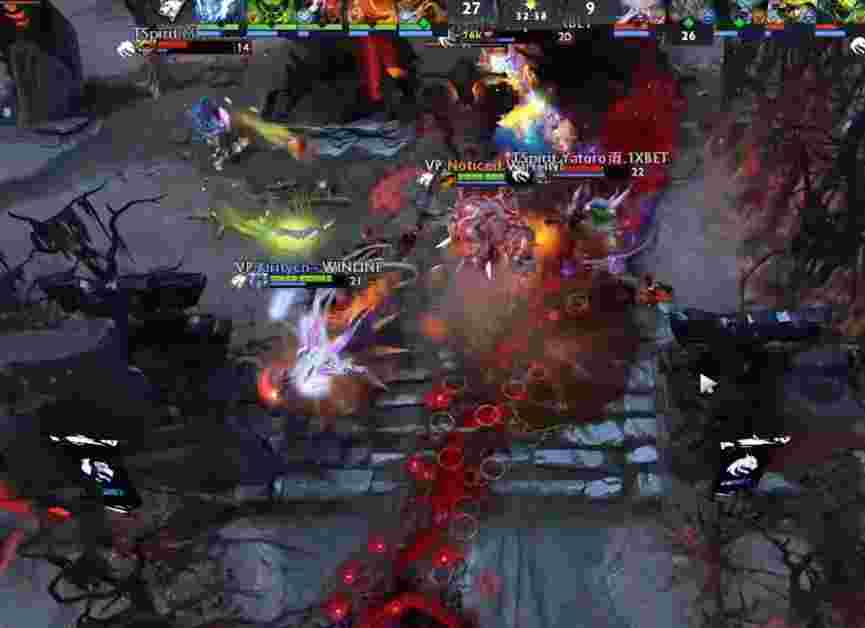 双方互刷到22分钟,VP三人开雾来下路抓人,正好撞上虚空。虚空大招罩到莉娜但被骨法虚无救下,幽鬼降临战场后Spirit不敢恋战撤退。VP拿下不朽盾,但钢背在坑里吃了冰魂大被白牛冲死。