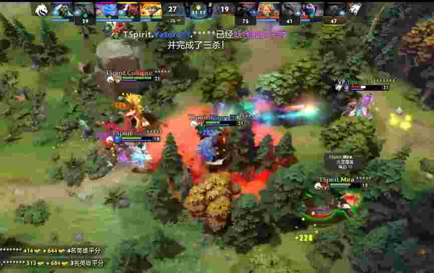 26分钟TA的陷阱探到海民后VP全体出击将其击杀,人马混沌冲脸欲杀帕克,凤凰在后方变蛋掩护混沌和TA。但yatoro非常冷静先是恐惧了混沌卡尔两个人,再开BKB打蛋,最后开启大招跟混沌TA对刚,混沌被打跑TA被大锤三连击杀