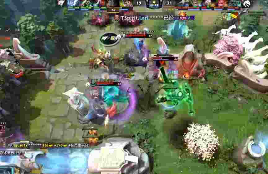 18分钟VP人马带队反攻,冲到Spirit野区先手奶绿但没能将其秒掉。大锤帕克马上支援留住两人轻松击杀。
