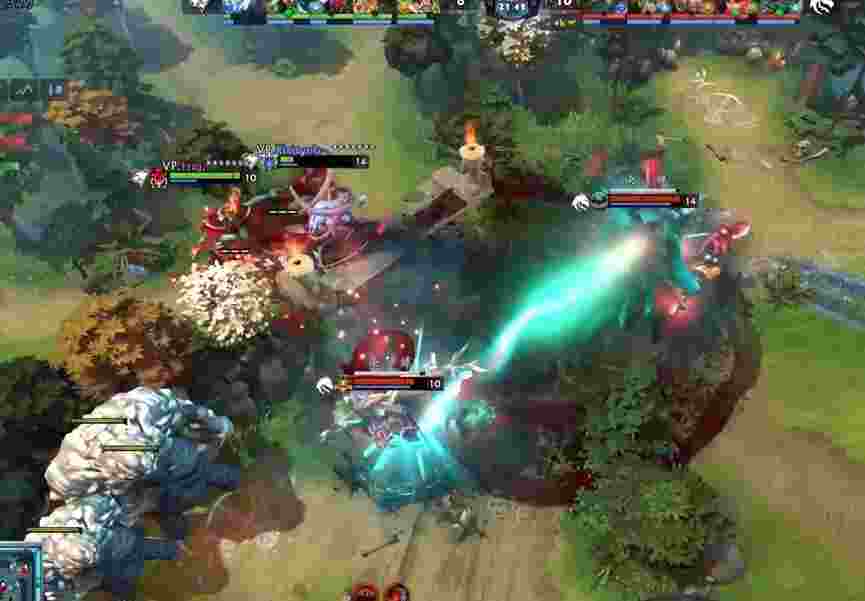 中路莉娜牢牢压制住了毒龙,而幽鬼也不停开大蹭人头,前期VP小优。但虚空节奏不错,每次大招都能配合队友收到人头,虚空刷着刷着经济爬到了第二位。