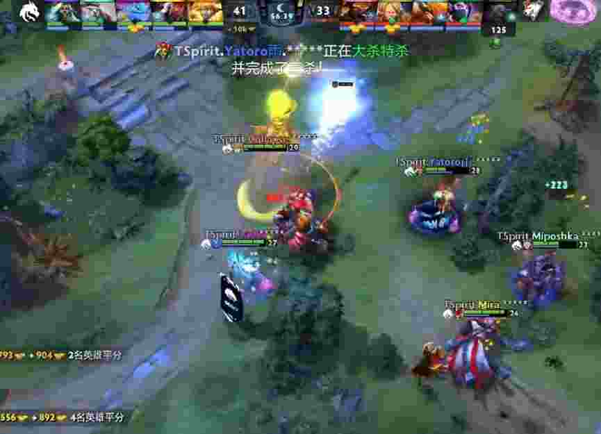 27分钟Spirit打盾,斯温盾还没带热乎就撞上了大帝光法,不朽盾瞬间被打掉。局势看似是Spirit的优势但经济并没有领先,在A杖大帝面前斯温也找不到好机会切入。32分钟斯温终于看到了光法,斯温开大开BKB试图单杀,伤害却不够。斯温马上撤退,Spirit众人也跟上掩护斯温,技能全交击杀了大帝。