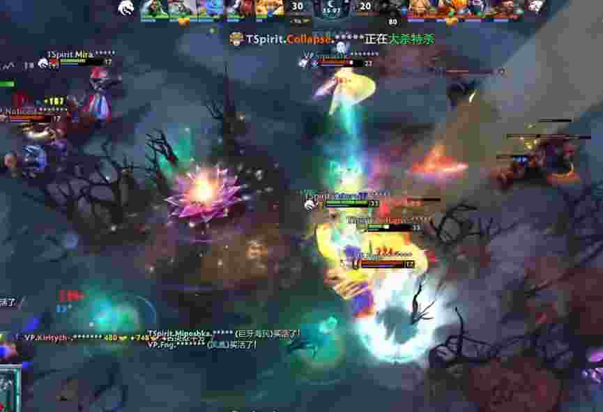 VP见Spirit大招全交,待大帝复活后开雾追出,幽鬼先手开大打残斯温后自己顶不住只能撤走,大帝追击斯温,斯温见状转头开启撒旦吸满并砍翻大帝,Spirit通过漂亮的拉扯完美打赢团战。