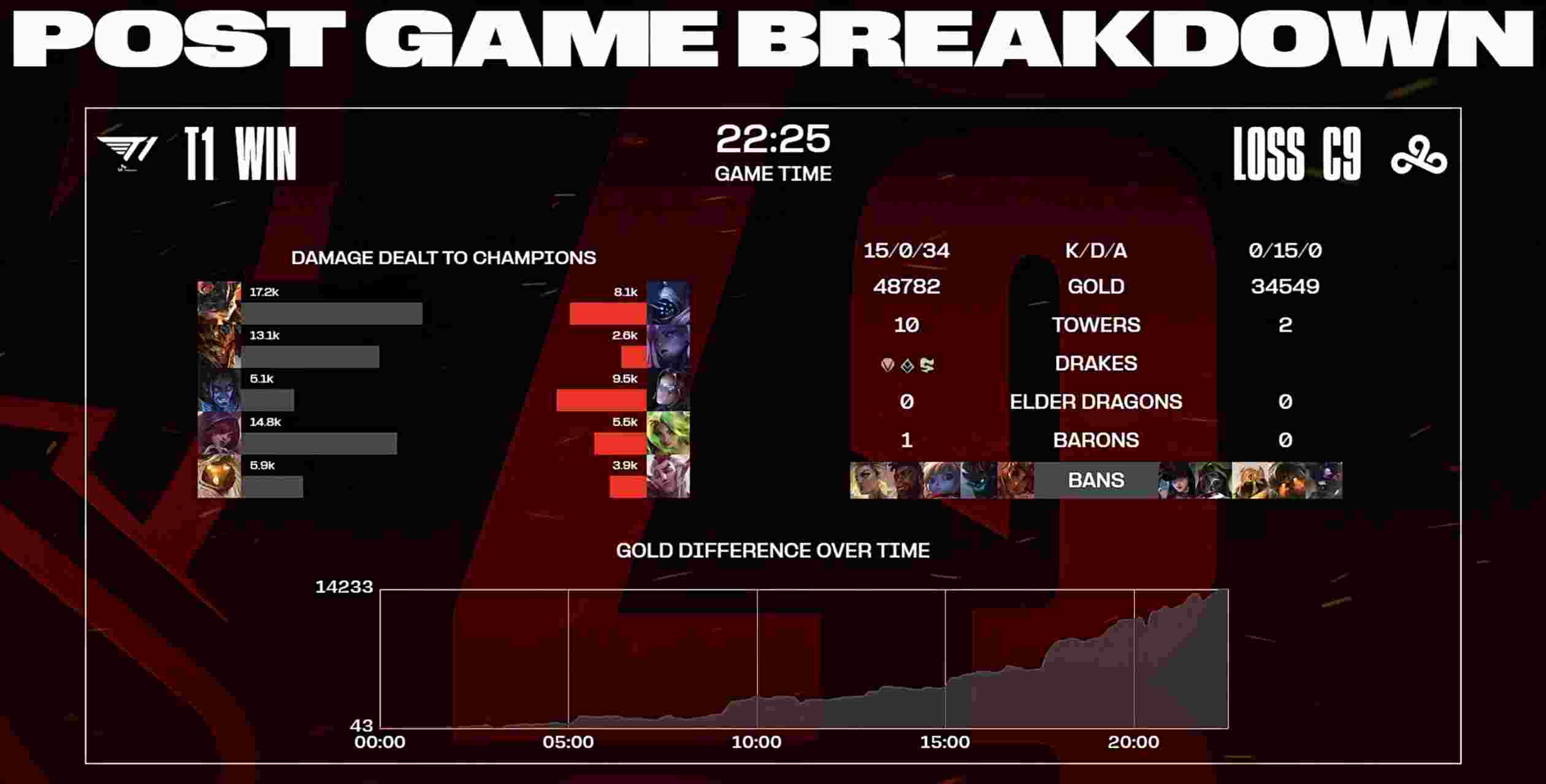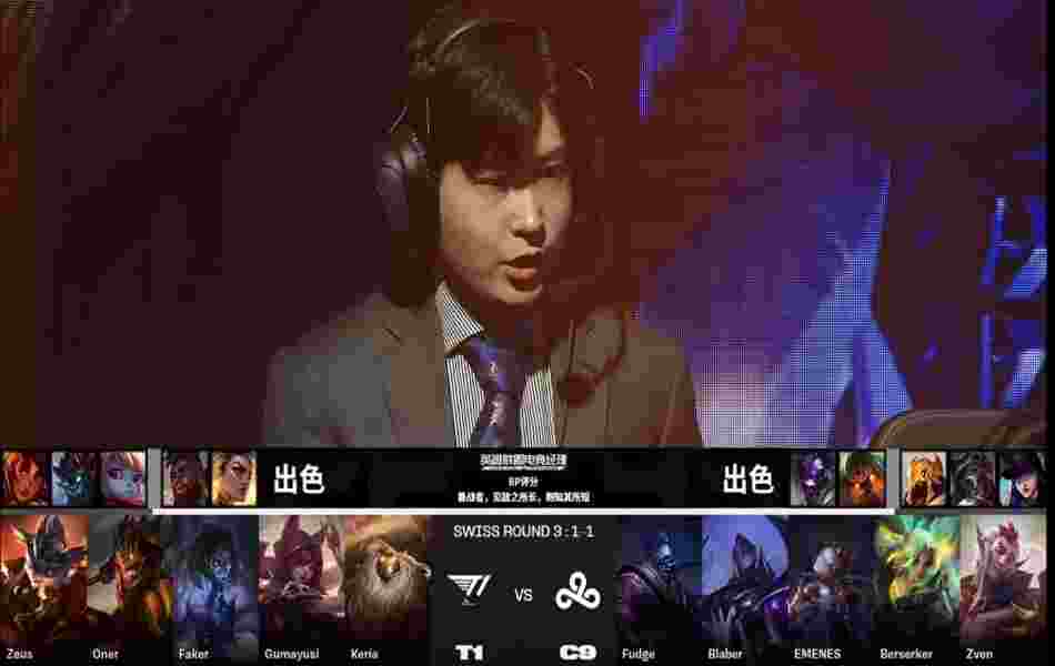 英雄联盟S13世界赛瑞士轮第四轮的第一场比赛,由T1对阵C9。