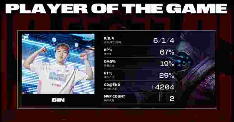 比赛第25分钟,BLG拿下第四条小龙,后续团战Oscarinin波比锤飞两个,Trymbi牛头二连四个,FNC又想动Elk小炮被他跳跃+闪现规避,Bin贾克斯回到战场跳进人群晕到四个直接一棒子敲死了Noah卡莎,随后的团战Bin贾克斯三杀收尾,BLG打出0换4!回头拿下大龙!再推掉所有外塔+中路高地,经济优势7K!
