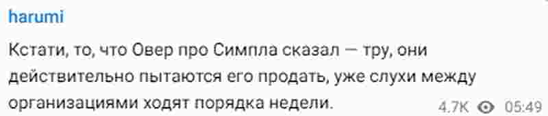 “顺便说一句,OverDrive关于s1mple的说法是真的,他们真的想卖掉他,传言已经传了大约一周了。”