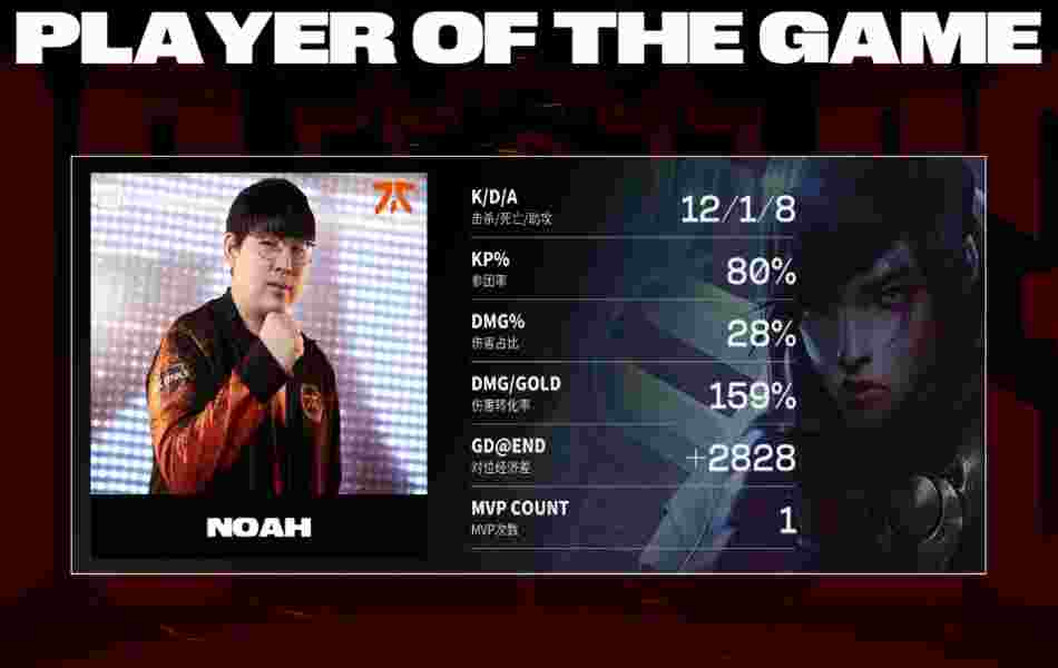 第39分半,发条在中路大招命FNC双c,永恩和霞跟上输出,成功击杀FNC双c后轻松打出0换4后一波结束了比赛。