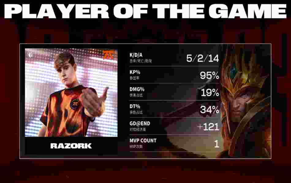 第15分钟,FNC中野gank上路被皇子反蹲到,发条直接被留在塔下秒杀,后续兰博大招落地打出巨额输出砍下三杀。