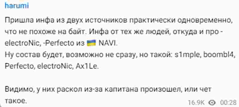 C9阵容可能不会马上公布,但将是:s1mple、Boombl4、Perfecto、electroNic、Ax1Le。他们在诸如队长问题上还存在分歧。”