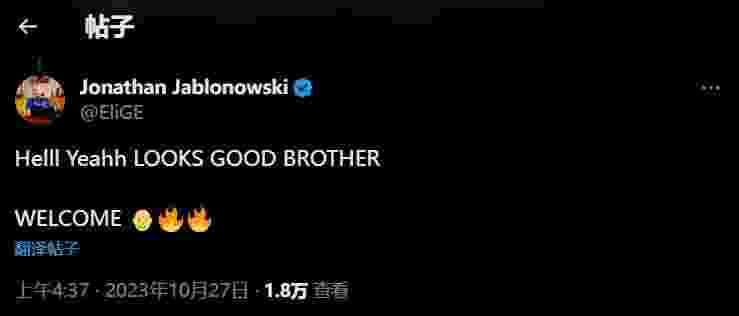 Jonathan Jablonowski | EliGE开心的评论:兄弟看起来不错,欢迎加入卤蛋家庭!