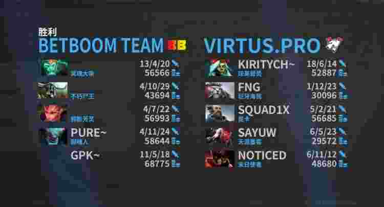 前期VP几波支援反打帮助队伍拿下优势,但是拿下两代肉山都没能推进埋下伏笔,Pure白牛发育不断拖到后期接管比赛,nightfall骷髅王三条命+A杖绿魂效果打团毫无惧色,kiritych圣剑奶绿打出十万伤害一度帮VP差点完成极限翻盘,大后期BB借助超级兵不断给到VP压力,kiritych奶绿单人想偷家被秒无力回天,BB经过八十分钟鏖战艰难推家获胜,晋级六强!