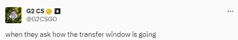 G2俱乐部在官方推特发布了一个动态,内容或与G2战队转会信息相关,推文的文字内容是这样的:“当他们问我转会的信息时”,同时G2配了一段短视频,似乎在表达无奈与伤感。