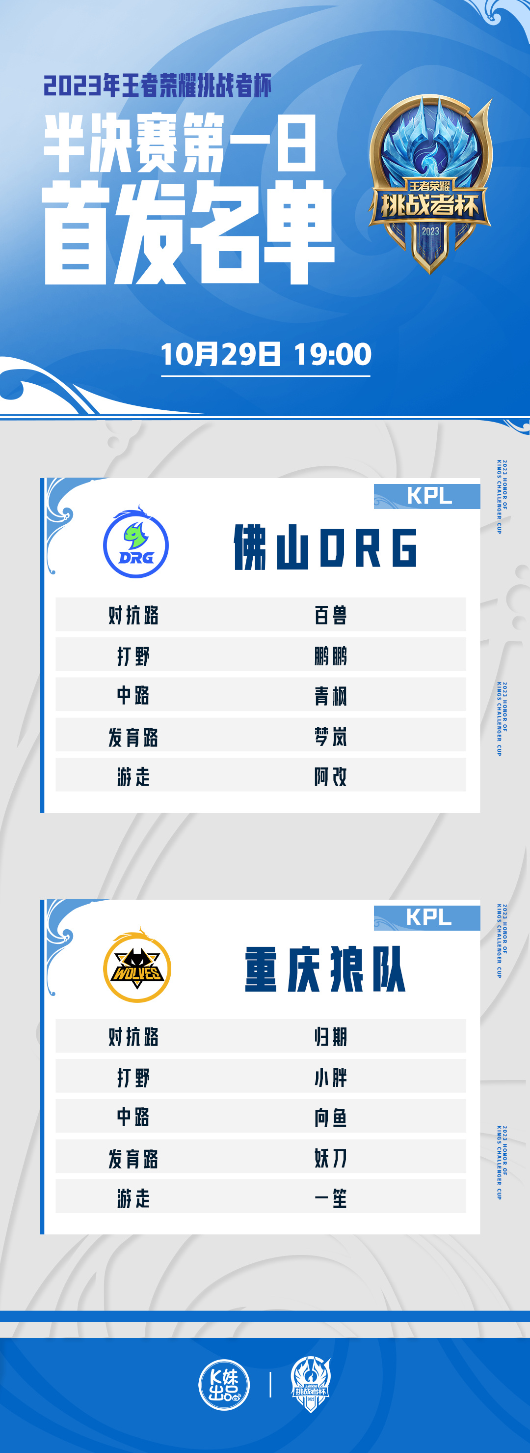 2023年王者荣耀挑战者杯半决赛Day1【首发名单】送达!
