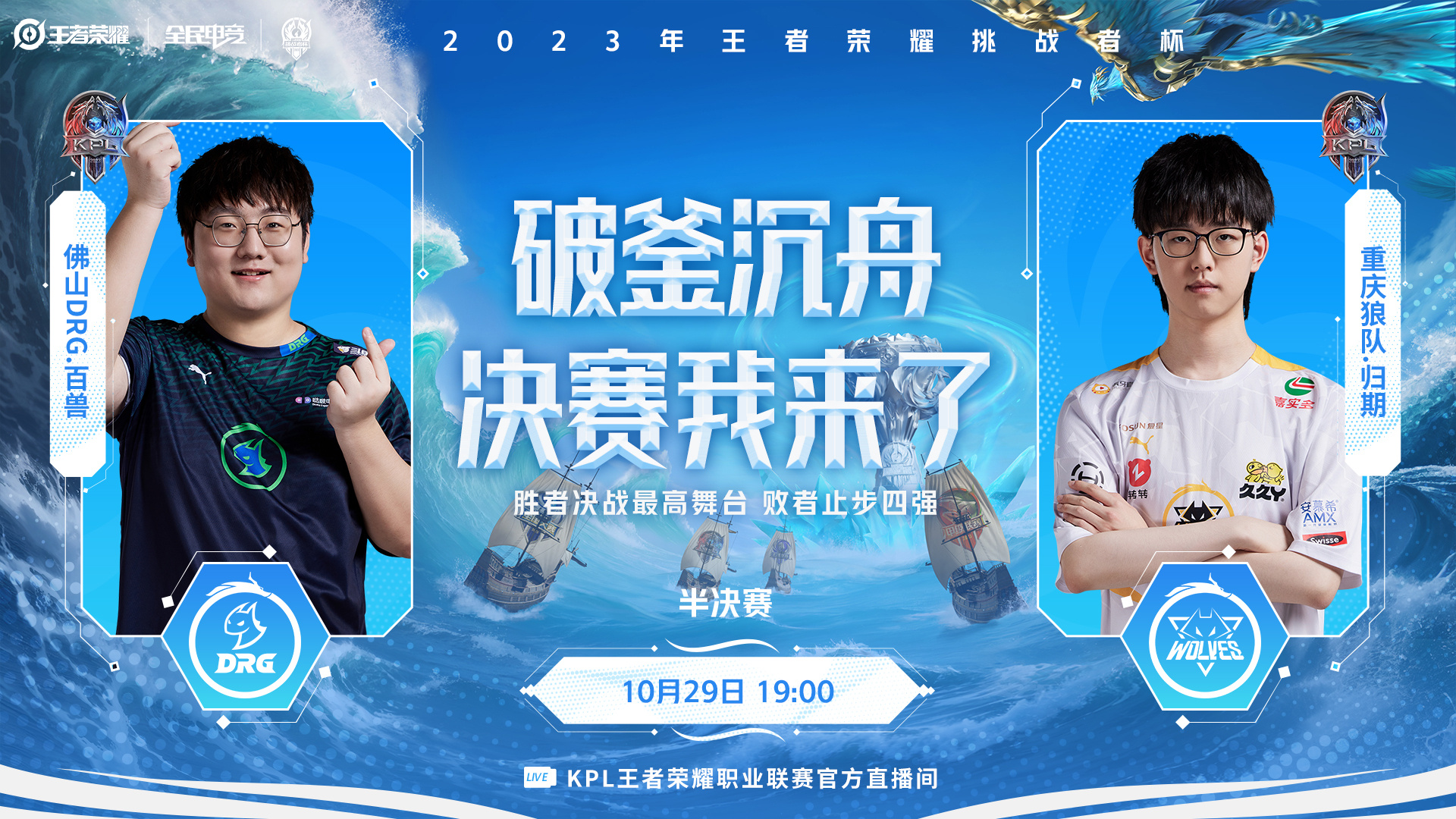 佛山DRG电子竞技俱乐部 本届挑杯首次对阵KPL战队,就遇上复仇成功的狼队王者荣耀分部 。1/4决赛中,佛山DRG以4:0的大比分轻松取胜,佛山DRG百兽 更是获得三连MVP;而重庆狼队则是与对手战至巅峰对决,最终拿下胜利,突破杯赛队史;此次双方交手,谁将拿到第一张总决赛的门票?让我们拭目以待!