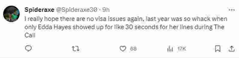 同时Spideraxe也表示,希望这次邀请的歌手不会再出现签证的问题了,去年 Edda Hayes因签证问题无法到达开幕式的现场。