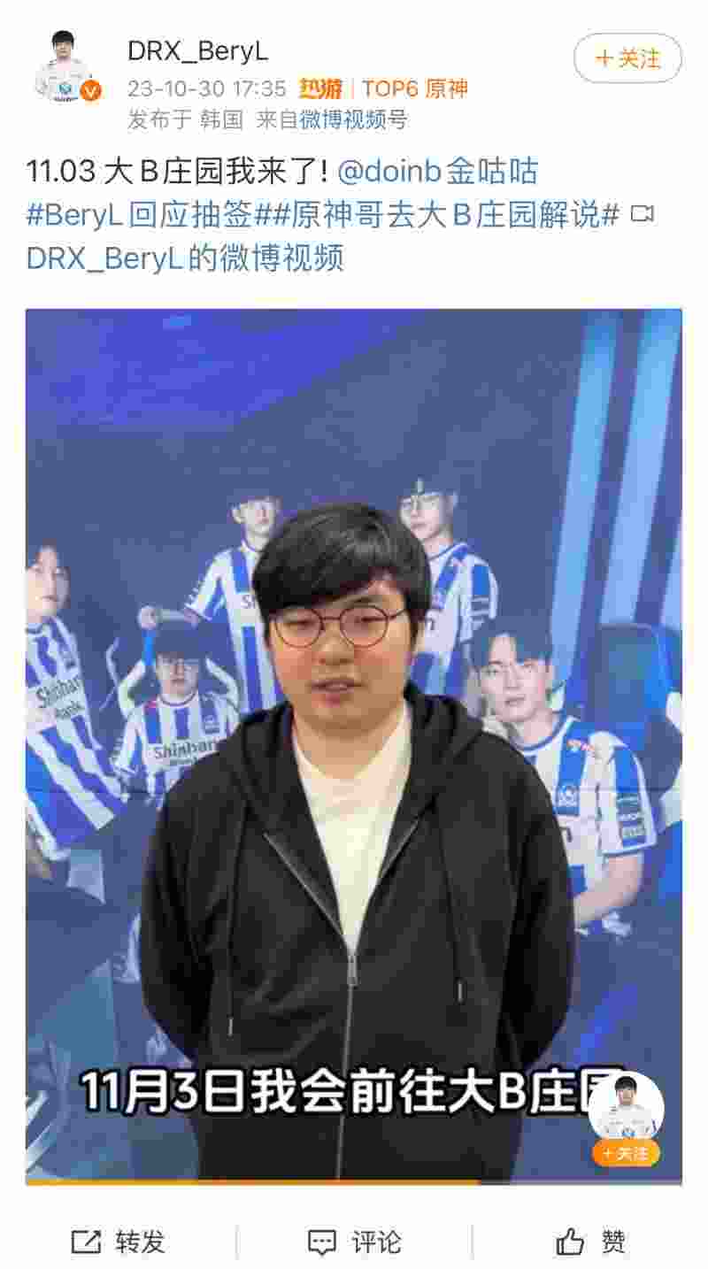近日,“原神哥”“宝绿”双冠王辅助Beryl在微博发布动态,表示在S13淘汰赛阶段他将开始自己的中国行,并且在11月3日造访Doinb选手的大B庄园参与解说比赛,11月4日会参加斗鱼《冠军之路》二路节目。