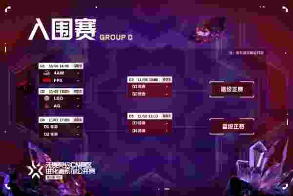 11月5日-10日,入围赛阶段即将打响!究竟哪八支队伍能晋级正赛,向EDG电子竞技俱乐部 、TE溯无畏契约分部 、RA电子竞技俱乐部 和ASE电子竞技俱乐部 发起挑战?精彩比赛,敬请期待!