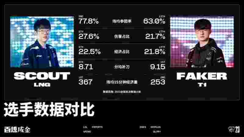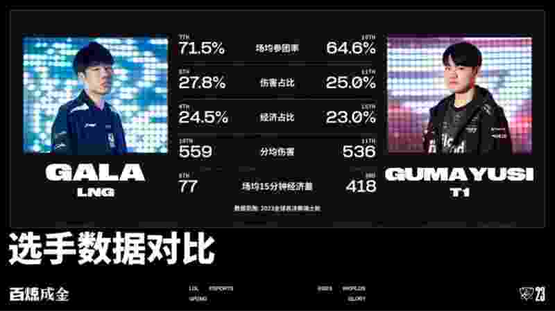 AD选手数据的对比中,Gala也是全面领先Gumayusi,LNG双C硬实力都稳压T1一手,顶住前期压力,LPL全员会师四强指日可待!