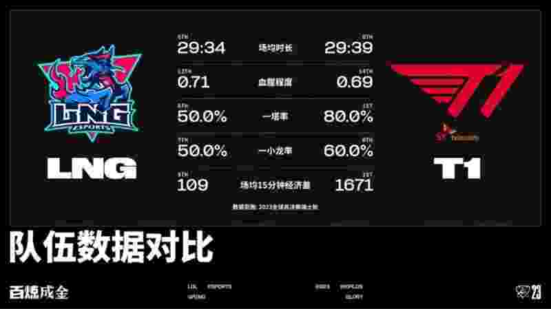 英雄联盟赛事数据官博发布2023全球总决赛四分之一决赛第四日LNG vs T1数据前瞻。