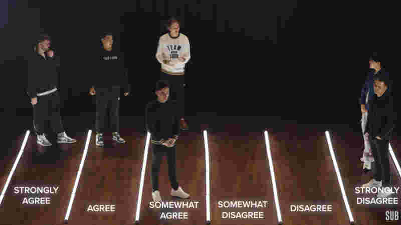 Keiko则是一开始站在了不同意那里,然后说我感觉还是挺有趣的,选手是很有趣的,但是网络上的人形形色色。最后他在Enzo的劝说下取到了绝对不同意。