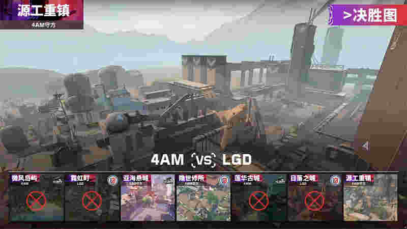 全场比赛的总比分4AM 1:2 LGD(亚海悬城17-15;隐世修所9-13;源工重镇11-13)