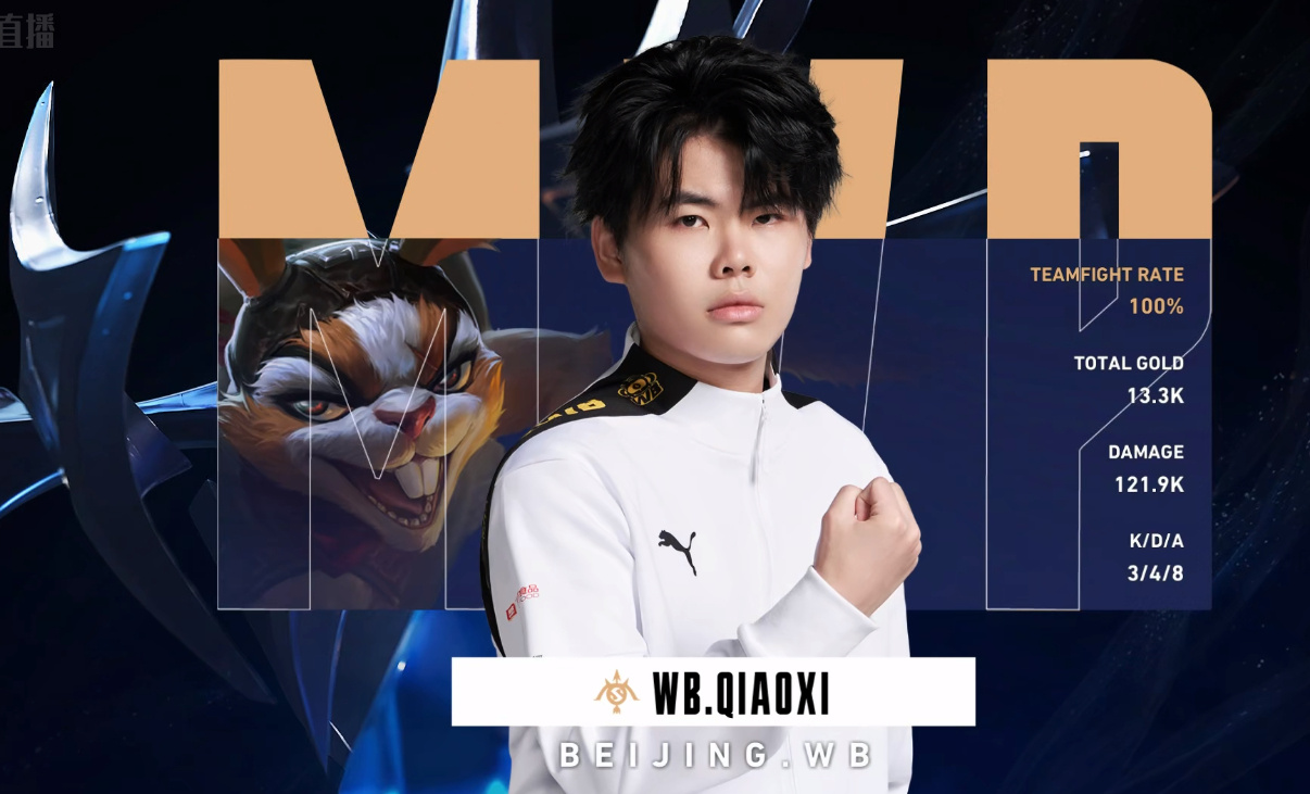 开局双方频换技能,但未有人头爆发。4分48,北京WB控下首条小暴君,北京WB梓墨 弗洛伦果断出击击杀宫本武藏,一血爆发。7分18,北京WB反手击杀兰陵王。8分38,武汉eStar子阳 兰陵王绕后威胁,武汉ES一换五顺势破掉中一塔。
