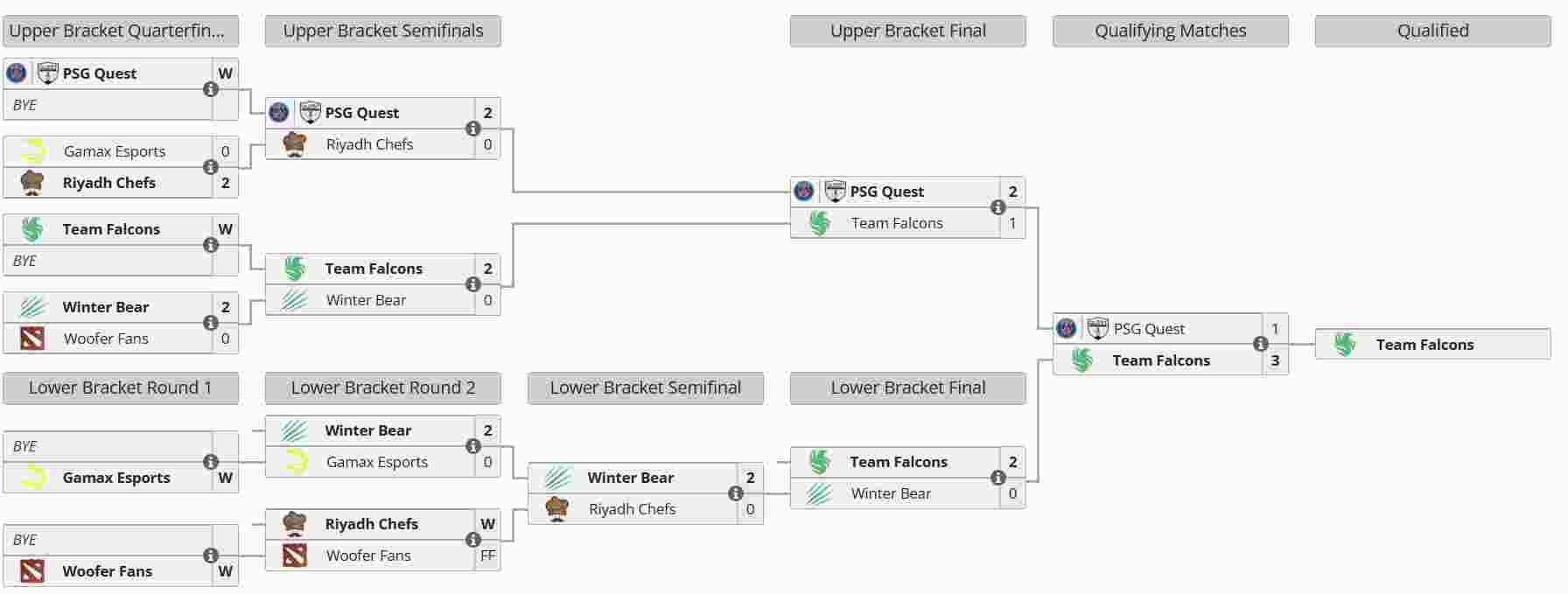 ESL One吉隆坡站的预选赛正在如火如荼的进行当中,中东赛区的晋级名单刚刚出炉。在胜者组决赛上,石油佬的Falcons1-2不敌Quest掉入败者组决赛。Falcons在败者组决赛里2-0轻松击败了Winter Bear晋级总决赛。