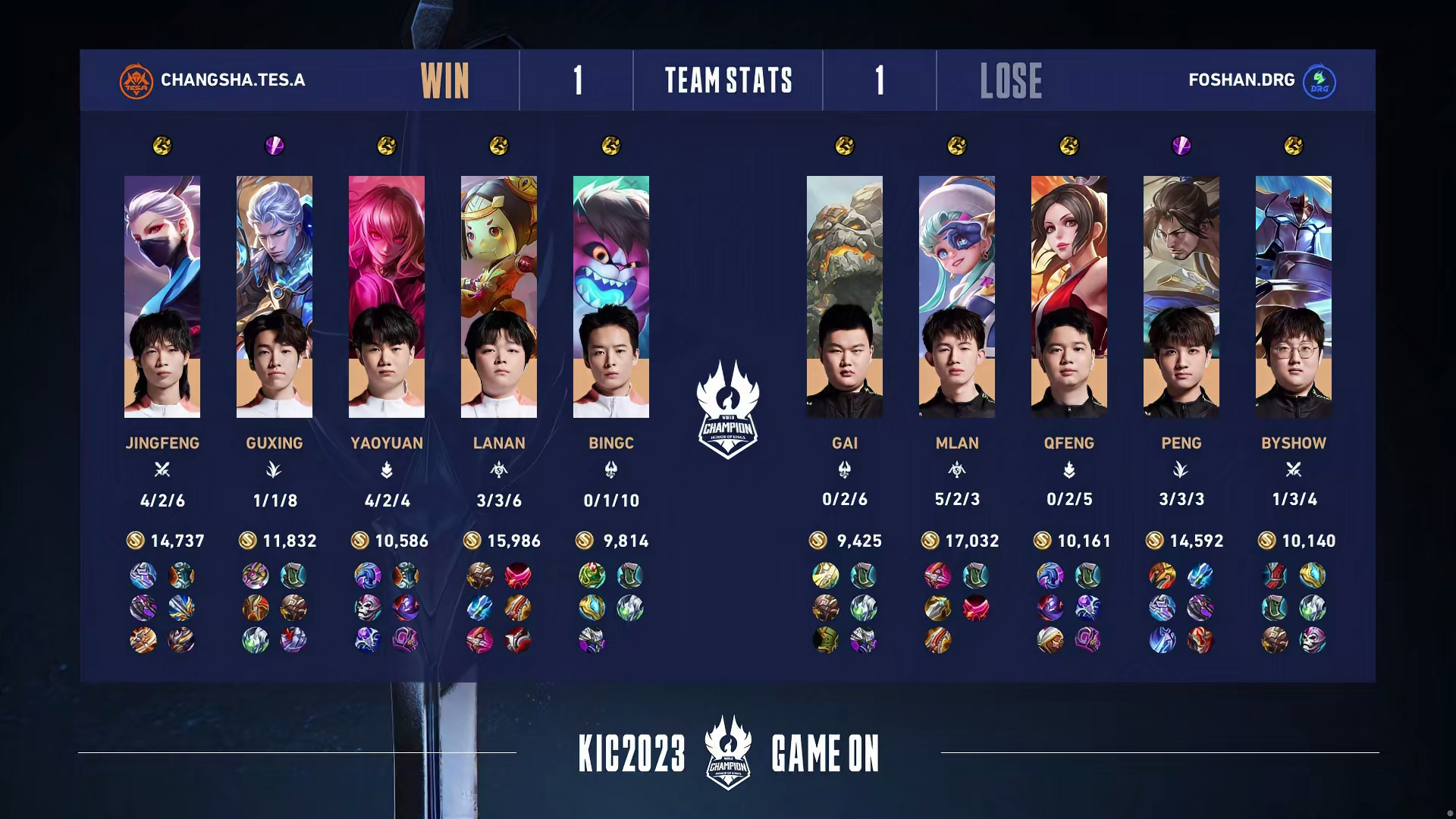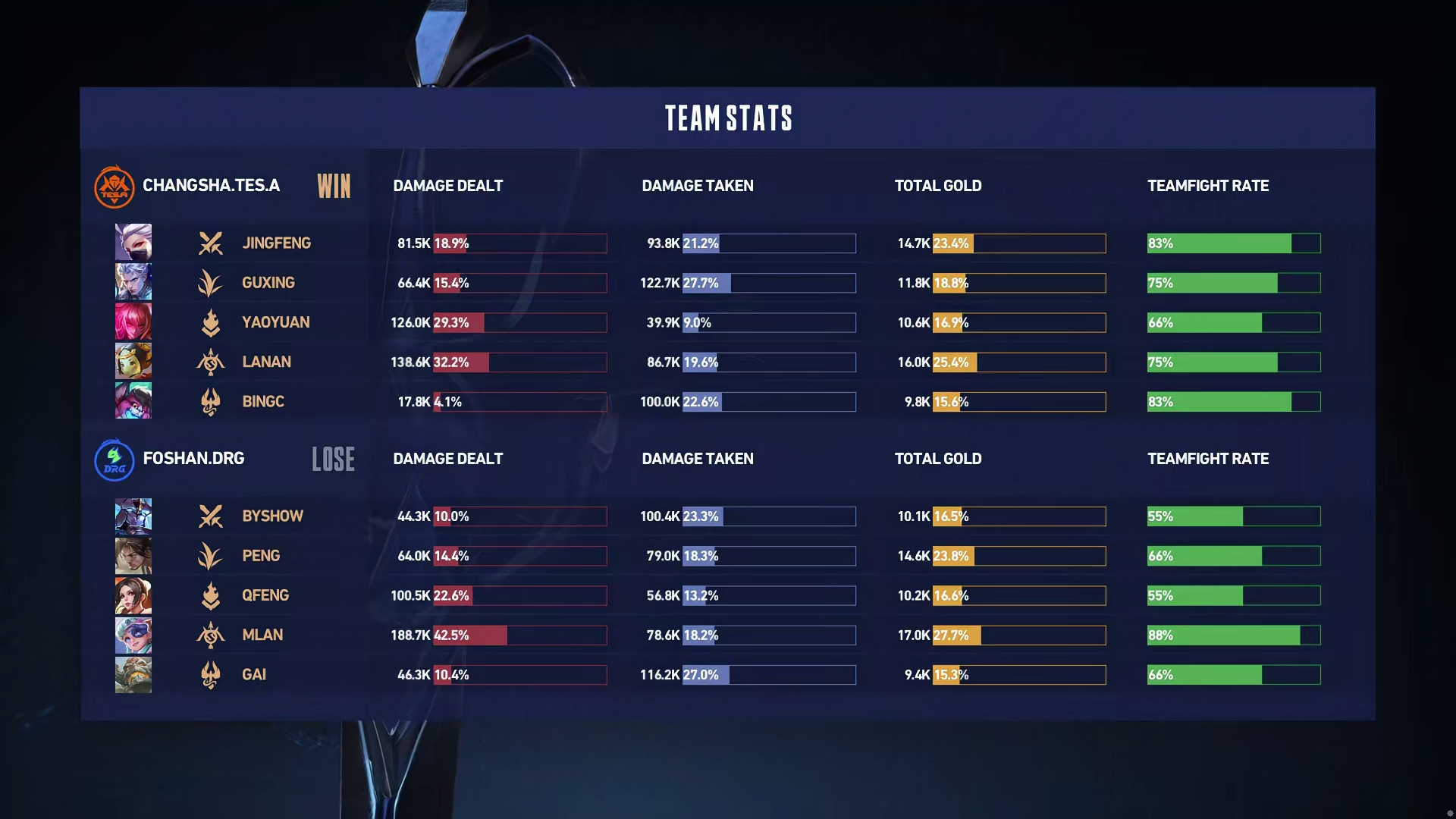 10分钟暗影暴君处冰尘皮皮成功保下鲁班七号,长沙滔搏蓝桉 鲁班七号站桩输出,尽管佛山DRG梦岚 缇莉击杀伊格,但正面团战长沙TES.A已击杀四人,将两条远古生物收入囊中。13分半长沙TES.A借助强化主宰先锋破掉上高,后撤找到绕后的宫本武藏并将其击杀。17分钟正面梦岚缇莉找到机会配合队友击杀爱里,同时佛山DRG卢家鹏 宫本武藏绕后收掉伊格,佛山DRG零换二,但蓝桉鲁班七号输出环境极佳,打出缇莉复活甲。18分50长沙滔搏顾兴 铠成功抢下暗影暴君,长沙TES.A破掉上高。20分半风暴龙王处爆发决胜团,靖风爱里二连击破,长沙TES.A二换四打赢团战,直推水晶,拿下胜利!