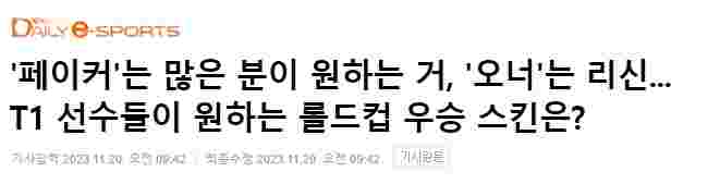 11月19日,T1横扫WBG夺得S13全球总决赛冠军,赛后韩媒DAILYESPORTS发布报道,赛后群访中T1选手们提到了自己想要的冠军皮肤: