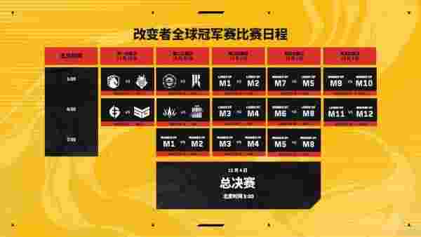 第二天(亚洲时间11月30日):上半区四分之一决赛和上半区半决赛第三天(亚洲时间12月1日):