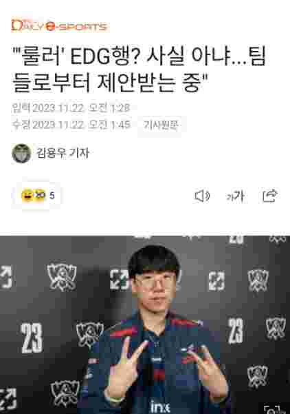 11月22日,Ruler的经纪公司SuperGent的相关人士21日就朴载赫将前往EDG的传闻表示:"这不是事实。"