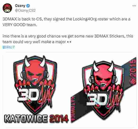 “3DMAX回归CS,他们签约的L4O真的是一支非常棒的队伍。在我看来,这一次他们将非常有机会出一套新的3DMAX贴纸,他们真的很有机会在Major取得成就。”