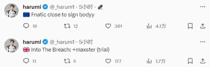 今天独联体爆料人harumi在个人推特上分享了自己得知的内幕讯息。