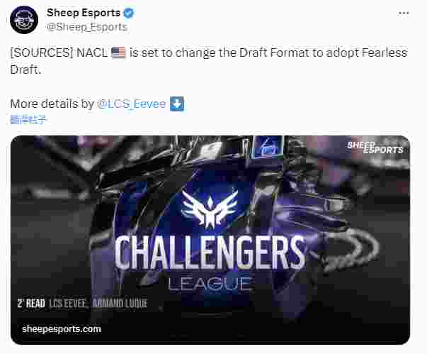 11月24日,据外媒Sheep Esports消息,自2024赛季开始LCS次级联赛将采用全局BP模式(全称:“无畏征召”BP模式)。