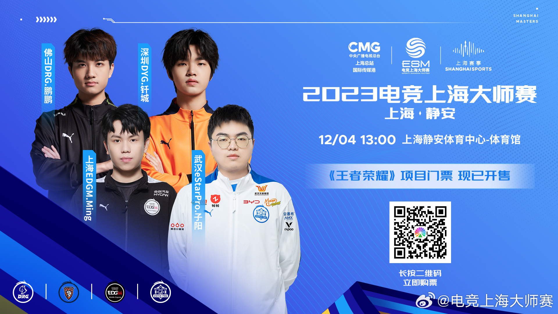 视野全开、巅峰重聚。2023电竞上海大师赛《王者荣耀》项目门票正式开售。佛山DRG电子竞技俱乐部 、DYG王者荣耀分部 、上海EDGM王者荣耀分部
