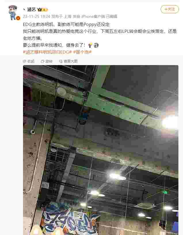 今日LPL爆料人、前V5教练涵艺在微博更新爆料: