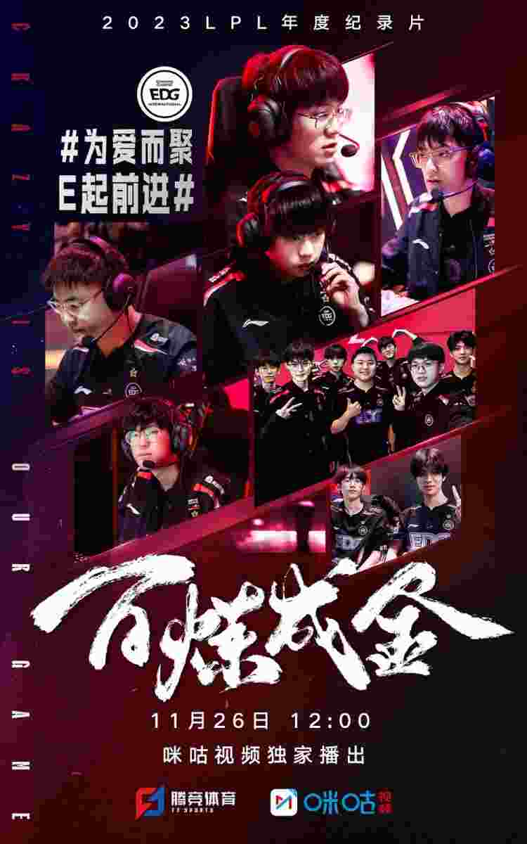 11月25日,2023LPL年度纪录片《百炼成金》第二集—EDG篇,11月26日12点播出!